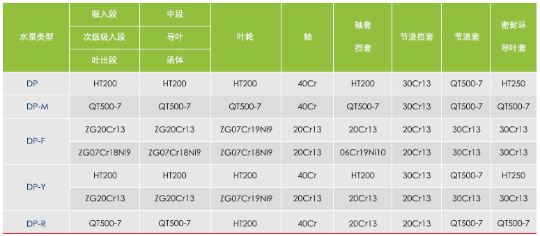 The first-stage double-suction impeller of the self-balancing multi-stage centrifugal pump minimizes the net positive suction head required by the pump and improves its cavitation resistance. The suction port on the suction section is in the horizontal direction (for the DP-R model, it is vertically upward), and the discharge port on the discharge section is vertically upward. The suction section, middle sections, discharge section, and secondary suction section of the pump are connected into one body by tightening bolts. The head of the pump can be adjusted by increasing or decreasing the number of pump stages.