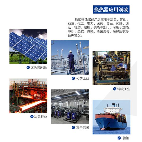 Plate heat exchangers have been widely applied in sectors such as metallurgy, mining, petroleum, chemical industry, power, medicine, food, chemical fiber, papermaking, light textile, shipping, and heat supply. They can be used for various scenarios including heating, cooling, evaporation, condensation, sterilization, and waste heat recovery.